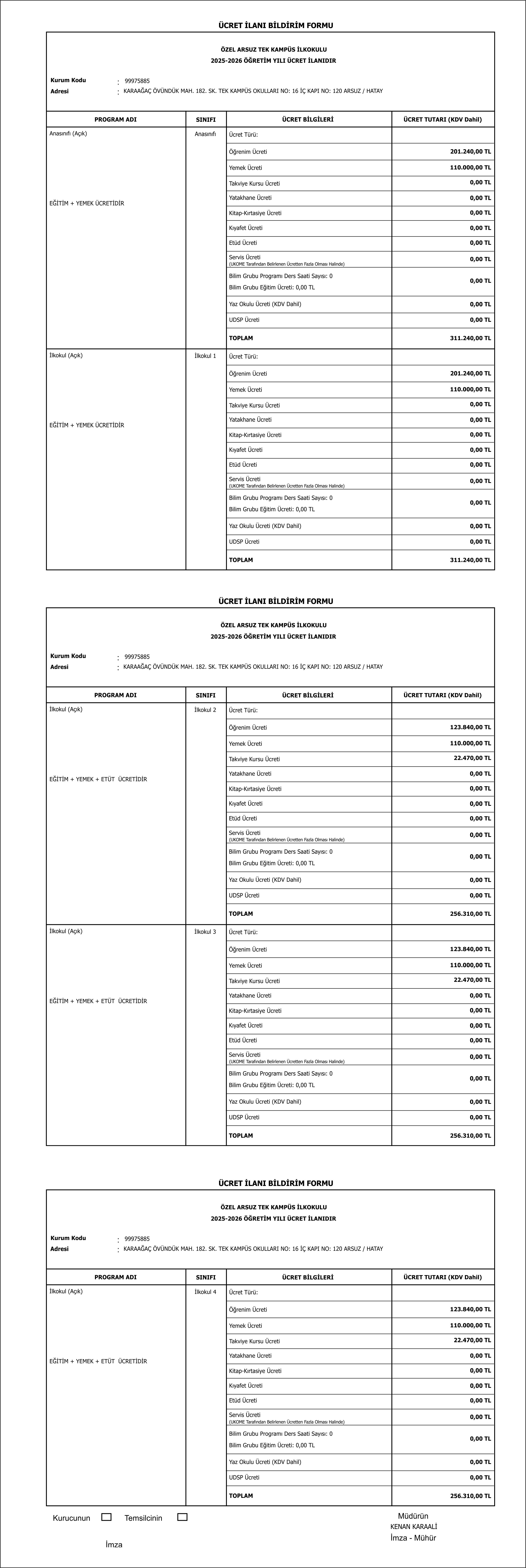 İlkokul Fiyat