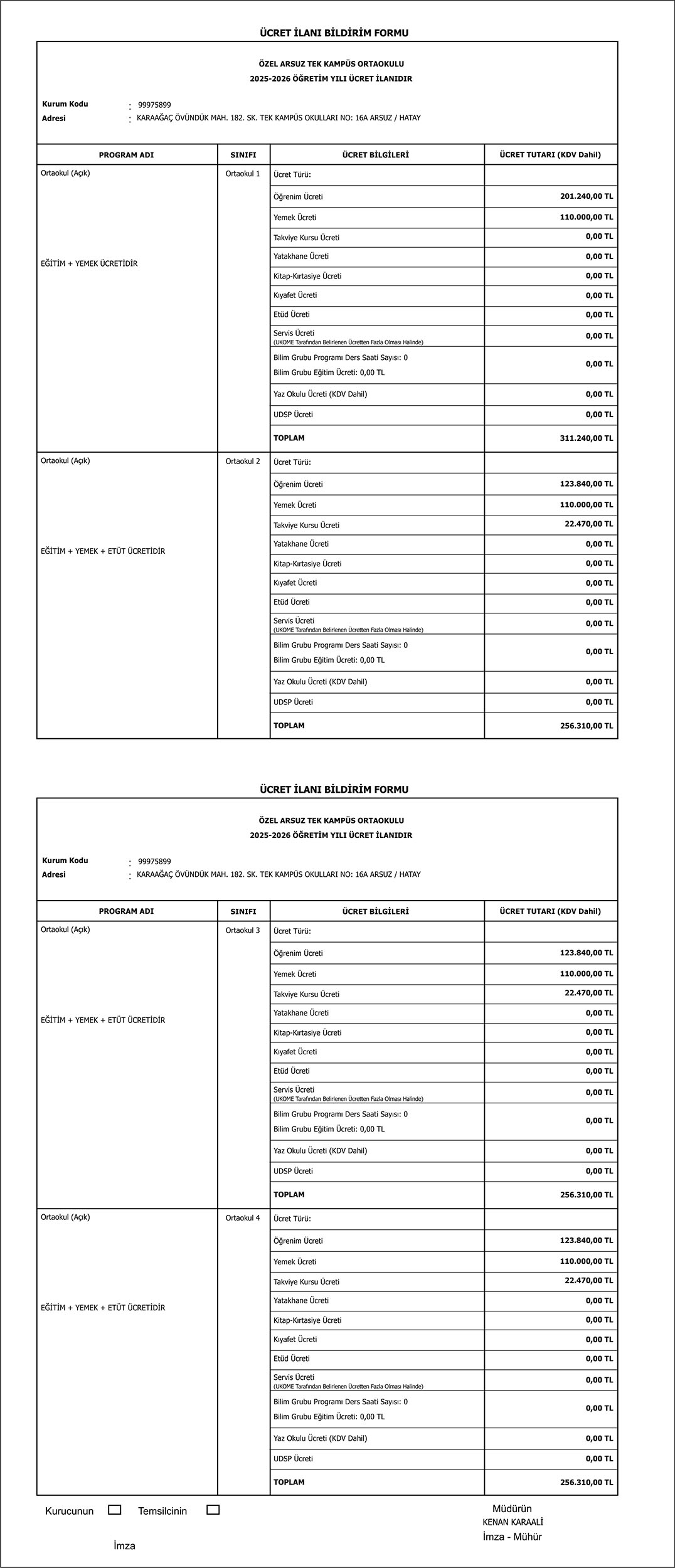 Ortaokul Fiyat